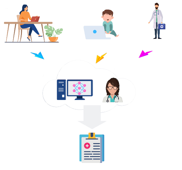 Machine learning algorithms and certified medical specialists review and analyze uploaded data.
